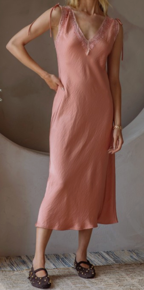 Sweet, sultry, and purely romantic. ✨ Our Princess Dress is the ultimate "it-girl" staple for your feminine wardrobe. This dress strikes the perfect balance between delicate vintage charm and modern sophistication. With its intricate lace-trimmed V-neckline and dainty tie-shoulder straps, it’s designed to make you feel like you’re walking through a dream.