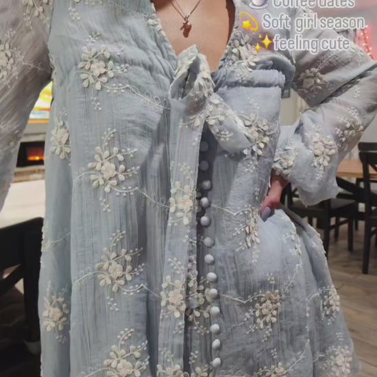 This sheer floral embroidered dress is a dream for any romantic. The breezy silhouette, balloon sleeves, and the A-line shape make it perfect for flattering all shapes!
